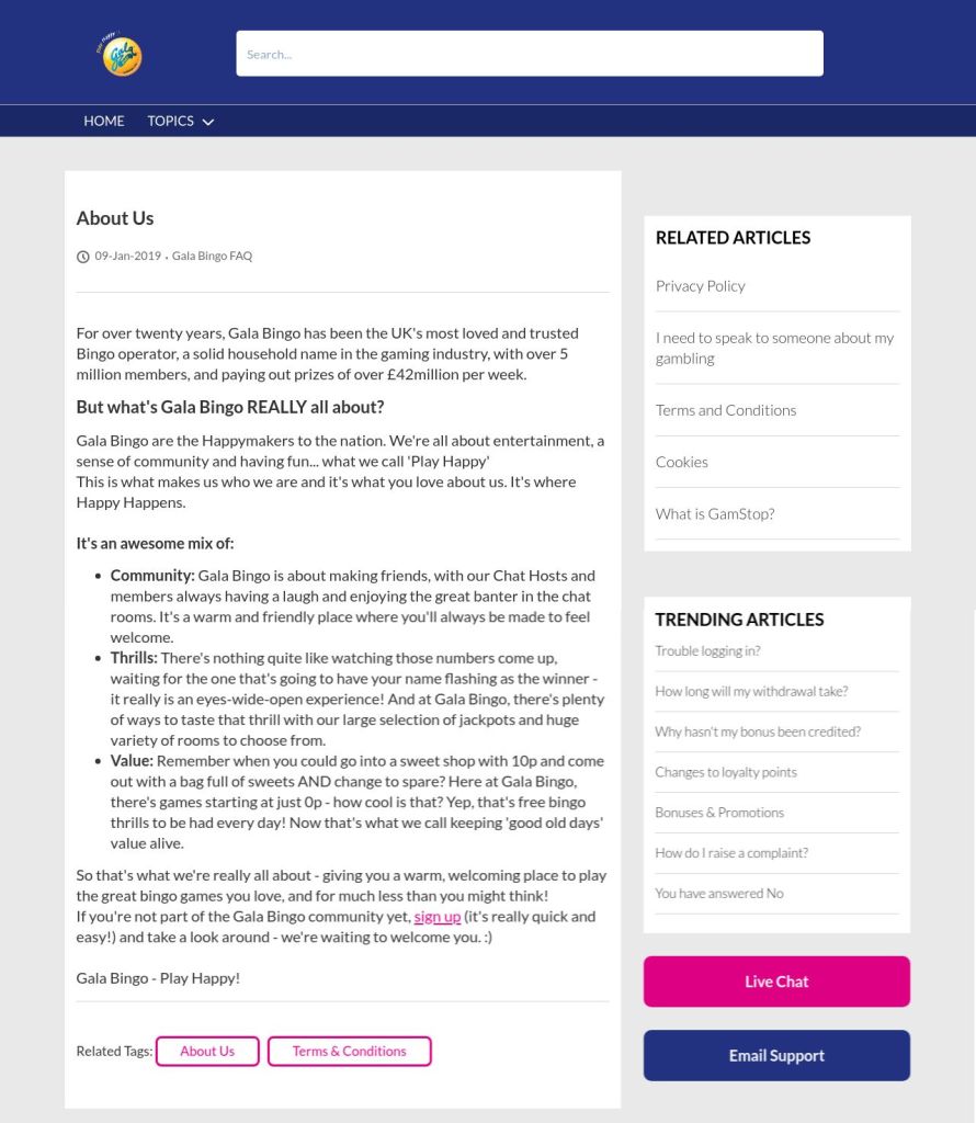 I also wrote a variety of pages for Gala Bingo’s website, including chat host bios, the site’s About Us page and the Refer A Friend page.