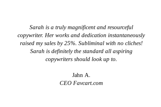 For over 20 years, Sarah has been writing high-performing copy for top global brands to small businesses, helping them achieve more followers, leads and sales, both online and off.